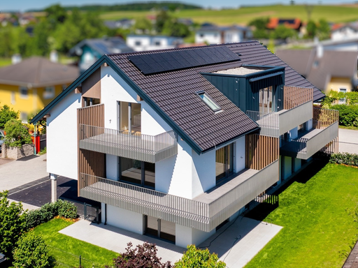 Die beiden 4-Zimmer Wohnungen im Obergeschoß zeichnen sich durch ihre effiziente Planung und die großzügigen Balkone aus. Im Dachgeschoß bilden zwei 3-Zimmerwohnungen – ebenfalls mit gut nutzbaren Freibereichen – den Abschluss.